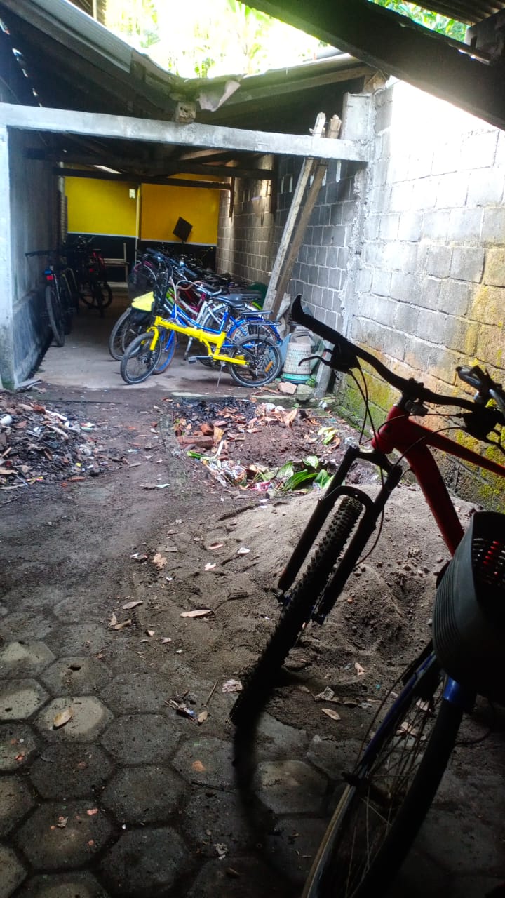 Sampah dengan sepeda di sekolah ini nambaknya sangat berkaitan erat, pasalnya lokasi pembuangan sampah berada ditengah tengah parkiran sepeda, sedangkan semestinya sampah tidak dibakar ditempat. Pembakaran sampah kaan memunculkan banyak persoalan, selain polusi udara baik di kelas maupun dilingkungan sekitar. Sepertinya juga kurang elok ketika tempat sepeda ditengah tengahn...